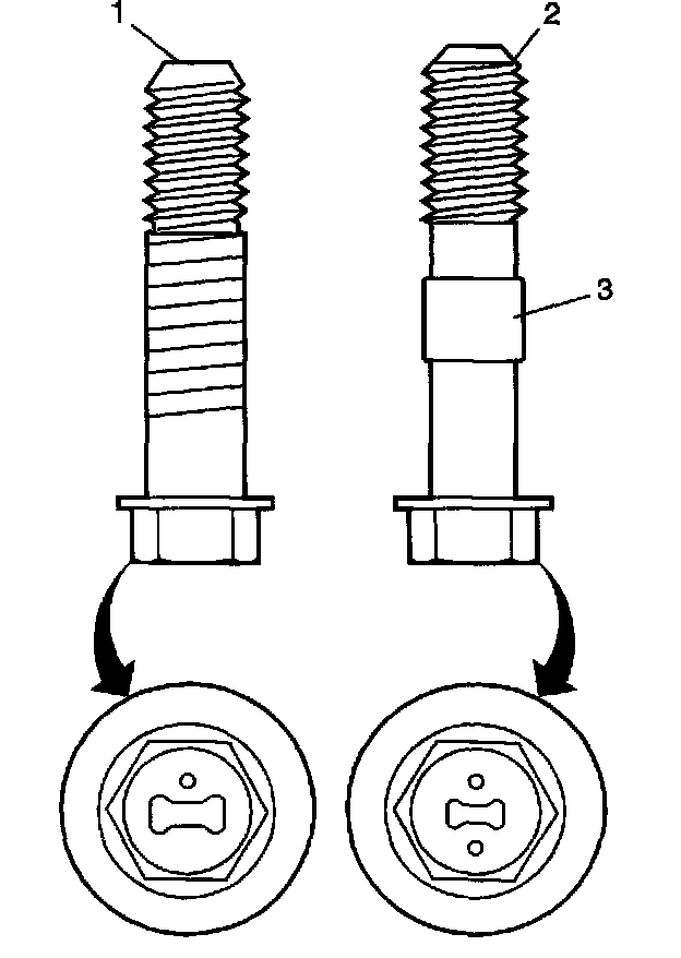 ^ The second design connecting rod bolt (2) can be identified by two dimples/marks on the head of the bolt and a retaining sleeve (3) on the bolt shank.