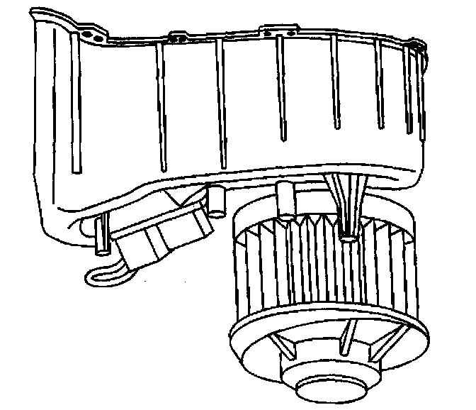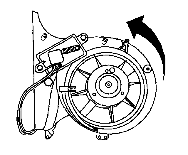 2. Install the blower motor to the heater/ventilation module. Turn the blower assembly clockwise until the retaining tab locks into place.