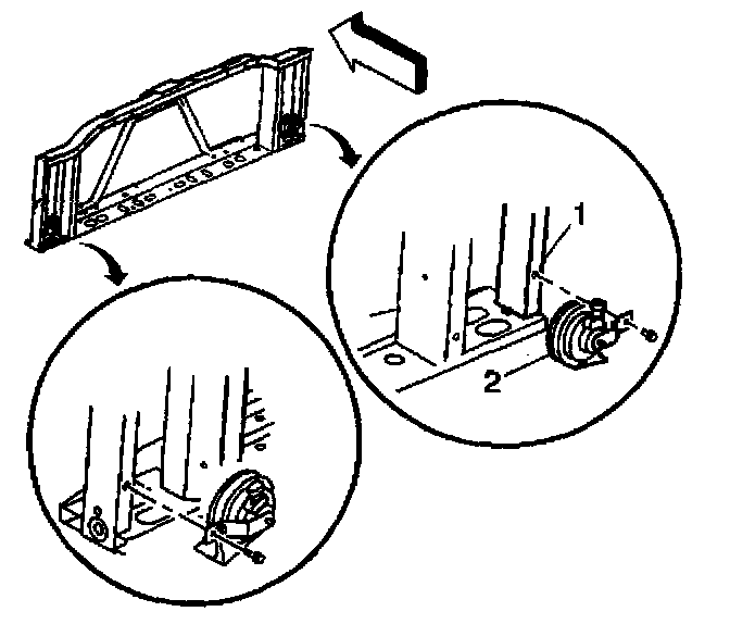 1. Install the horn (2) to the radiator support (1). Left side and right side horn assemblies are shown.