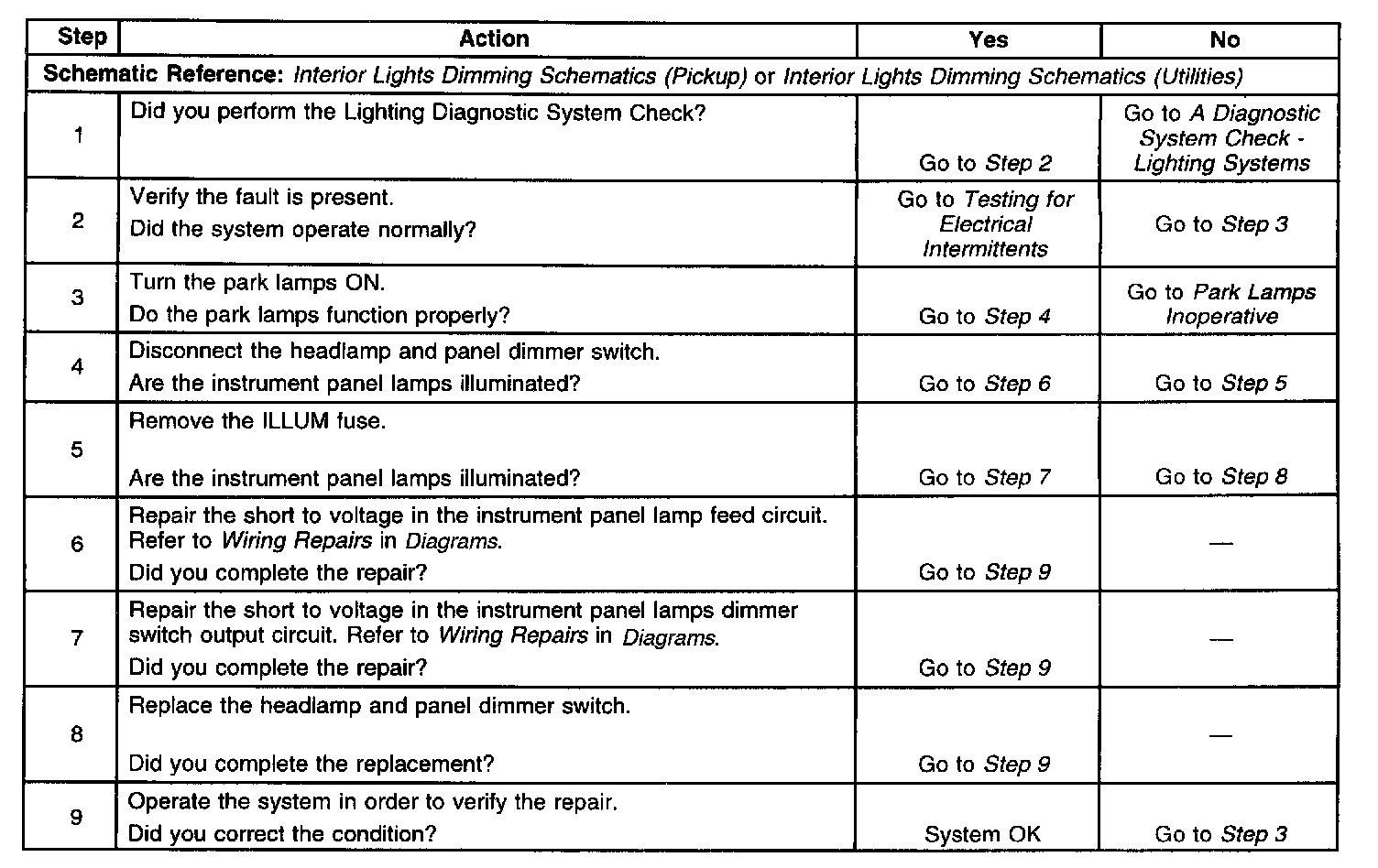 Instrument Panel Lamps Do Not Dim