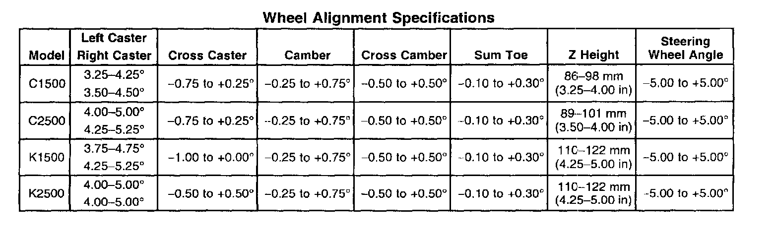 This bulletin is being issued to revise the Wheel Alignment Specifications in the Wheel Alignment subsection of the 1999-2000 Silverado and Sierra Service Manual.