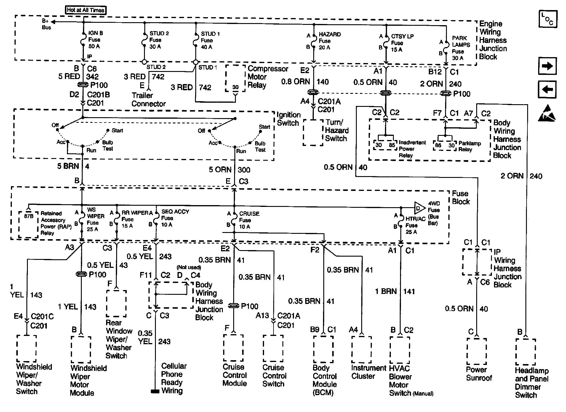 Power Distribution Schematics: Ignition Switch, BCM, Cruise Control: