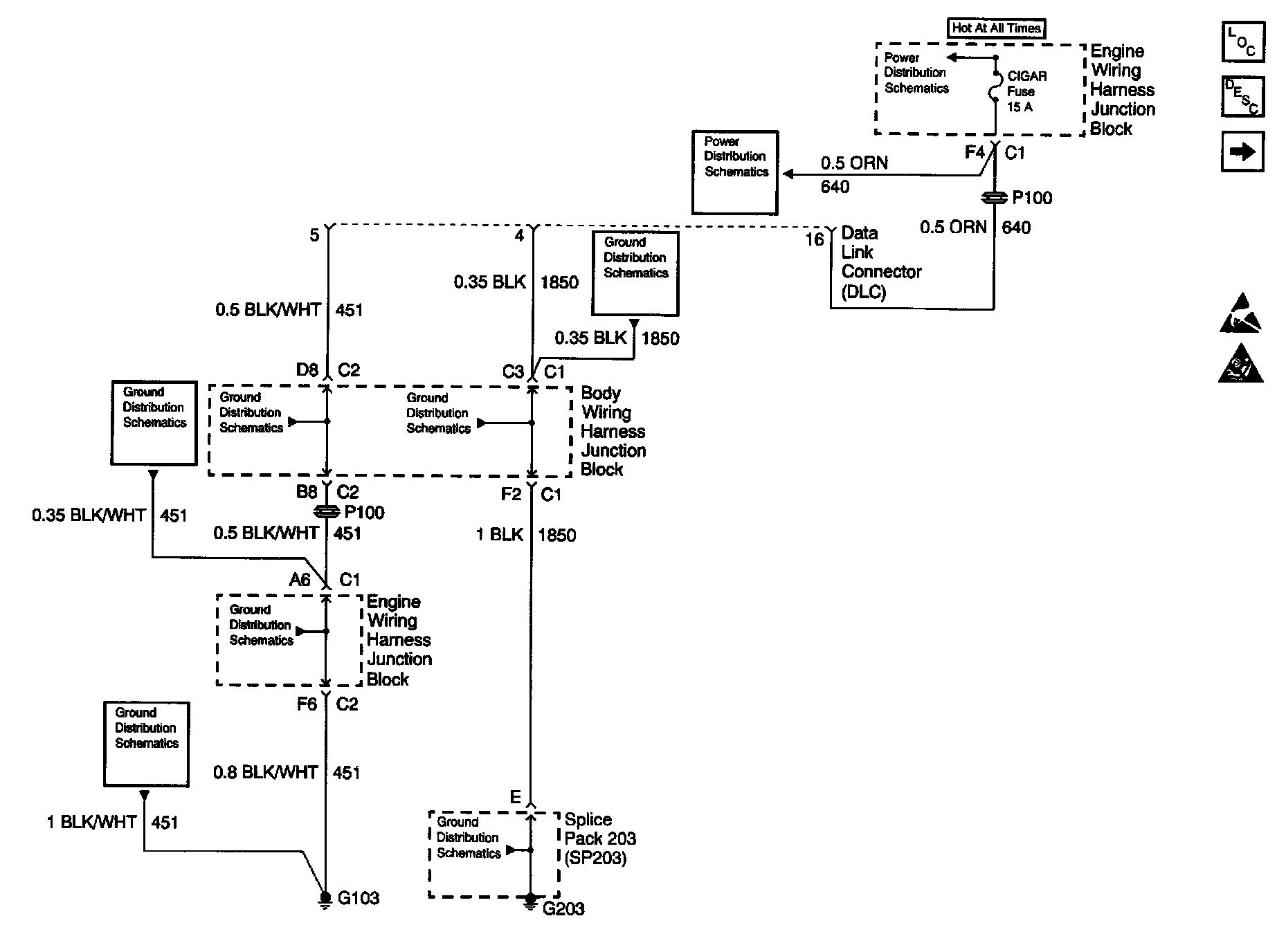 Data Link Connector (DLC) Schematics: CIGAR Fuse, G103, G203: