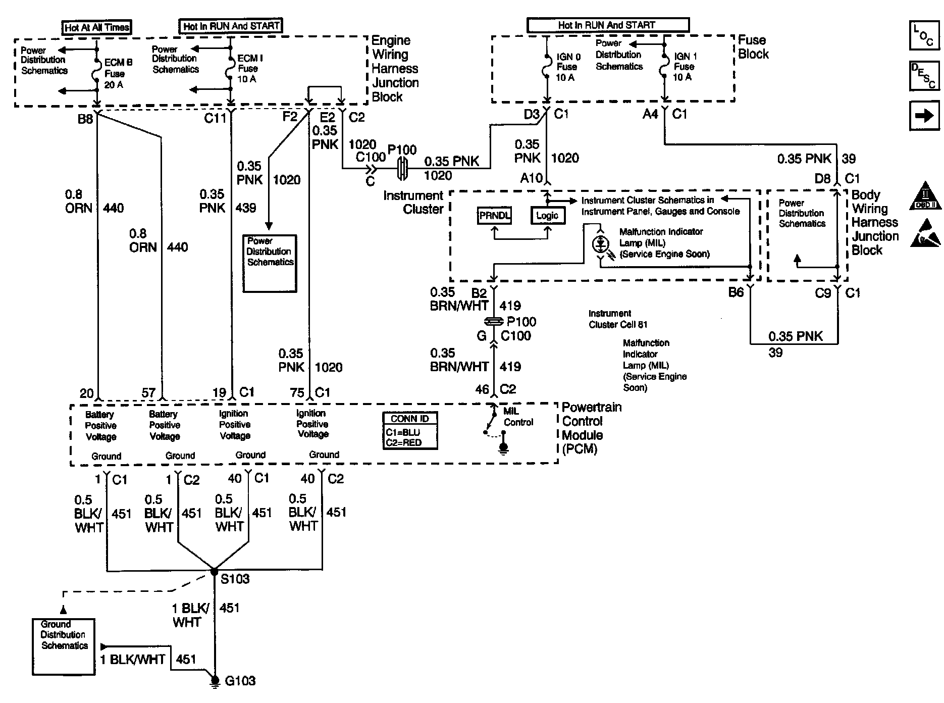 ECM B, ECM 1, IGN 1, IGN 0 Fuses, G103, IPC, PCM