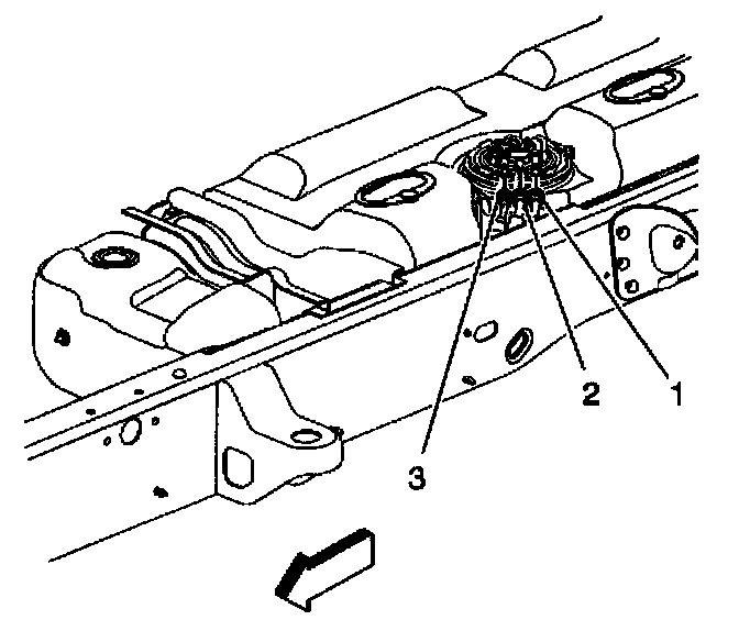 14. Disconnect the fuel feed return and EVAP (1), (2), (3) at the fuel sender.