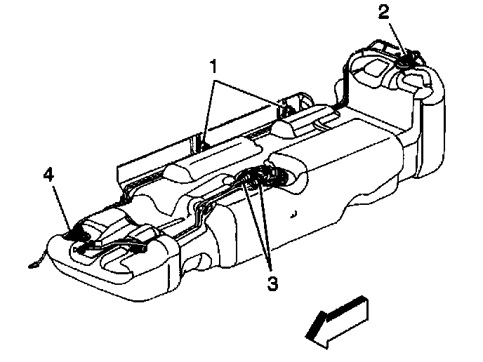 4. Drain the fuel tank. Refer to Fuel Tank Draining Procedure (Pickup) or Fuel Tank Draining Procedure (Utility with Single Tank) or Fuel Tank Draining Procedure (utility with Dual Tanks - Front Tank) or Fuel Tank Draining Procedure (Utility with Dual Tanks - Rear Tank).