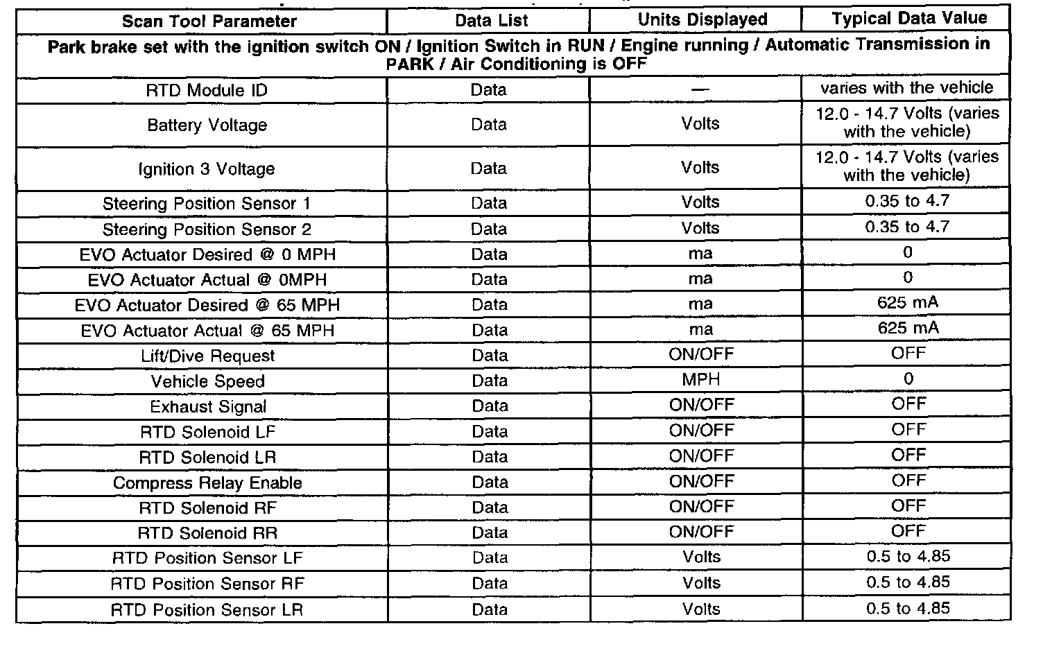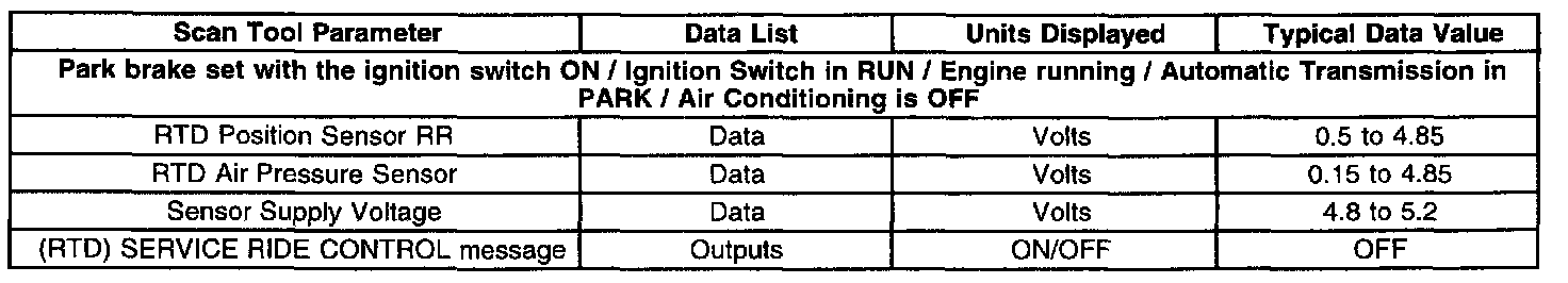 Suspension Control Module (RTD) Scan Tool Data List