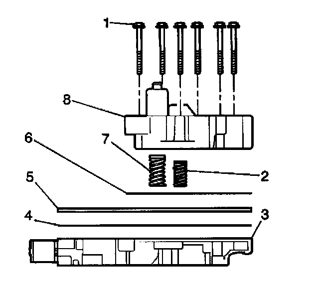6. Remove the control valve body spacer plate (5).
