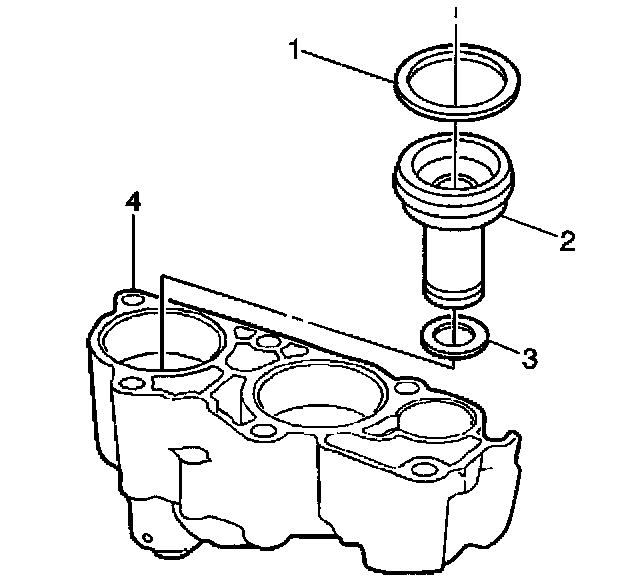 1. Install the 3rd clutch accumulator piston inner (3) and outer (1) seals. Lubricate the 3rd clutch accumulator piston seals (1 and 3) with Dexron(R) III automatic transmission fluid.