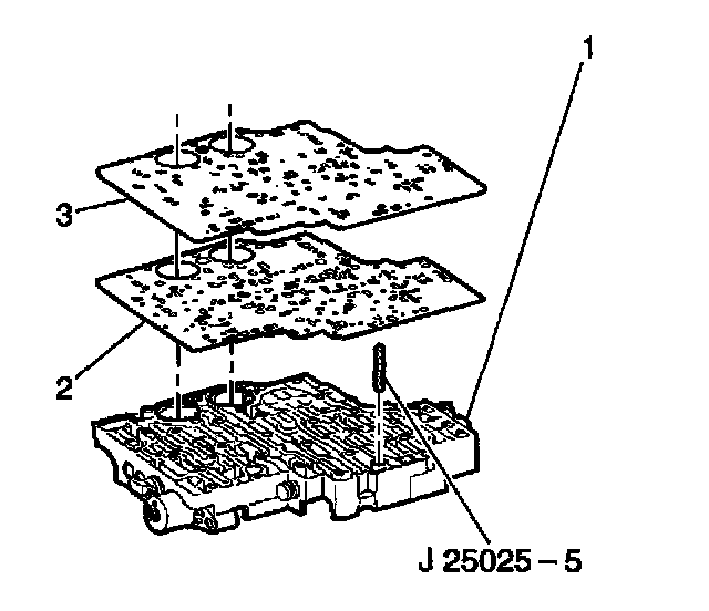 3. Install the control valve body spacer plate (3) onto the valve body gasket (2).