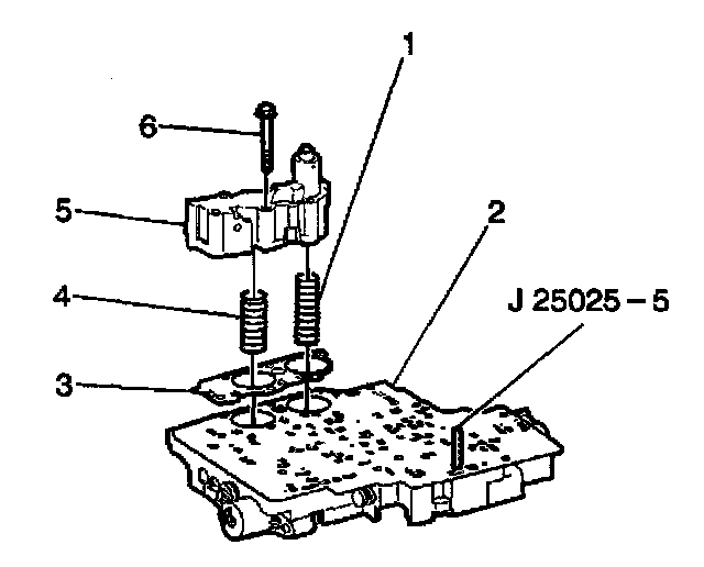 1. Install the J25025 into the control valve body bolt hole where the manual shaft detent roller and spring assembly is mounted.