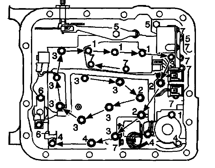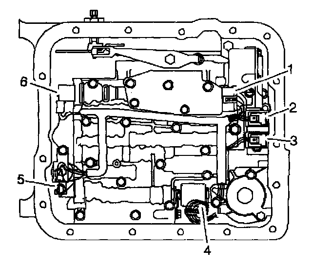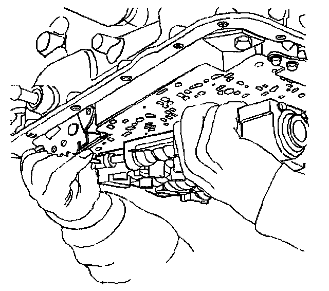 1. Remove the oil pan, gasket, and filter. Refer to Automatic Transmission Fluid/Filter Changing.
