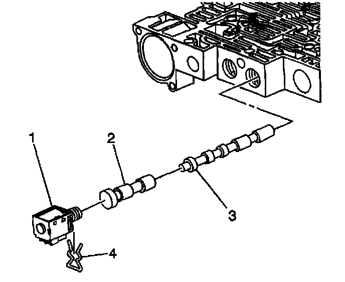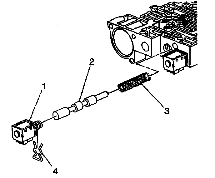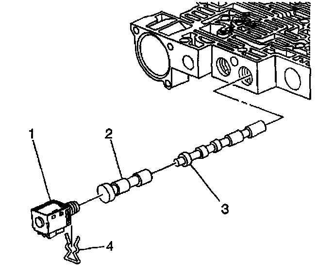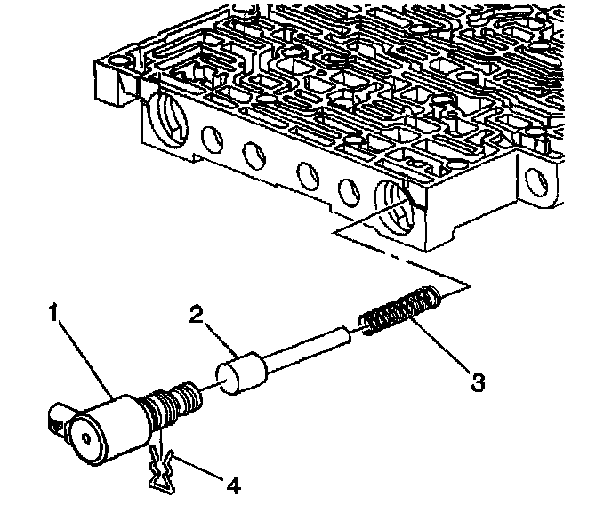 1. Remove the solenoid retainer (4) and the 1-2 shift solenoid (1).