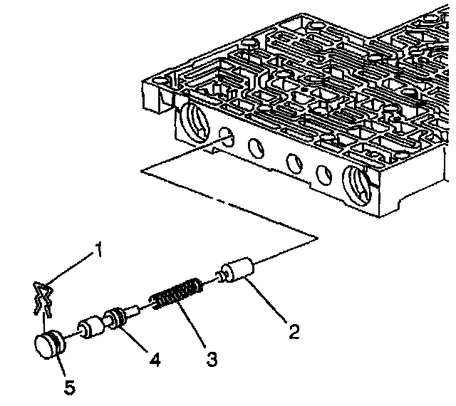 24. Remove the regulator apply valve (4) and the regulator apply spring (3) and the isolator valve (2).