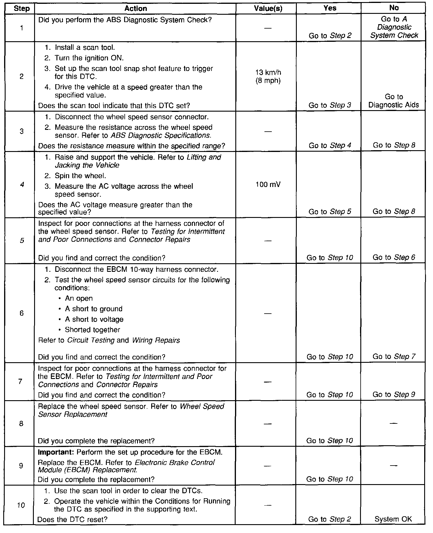 5. This step ensures that the wheel speed sensor generates the proper voltage.