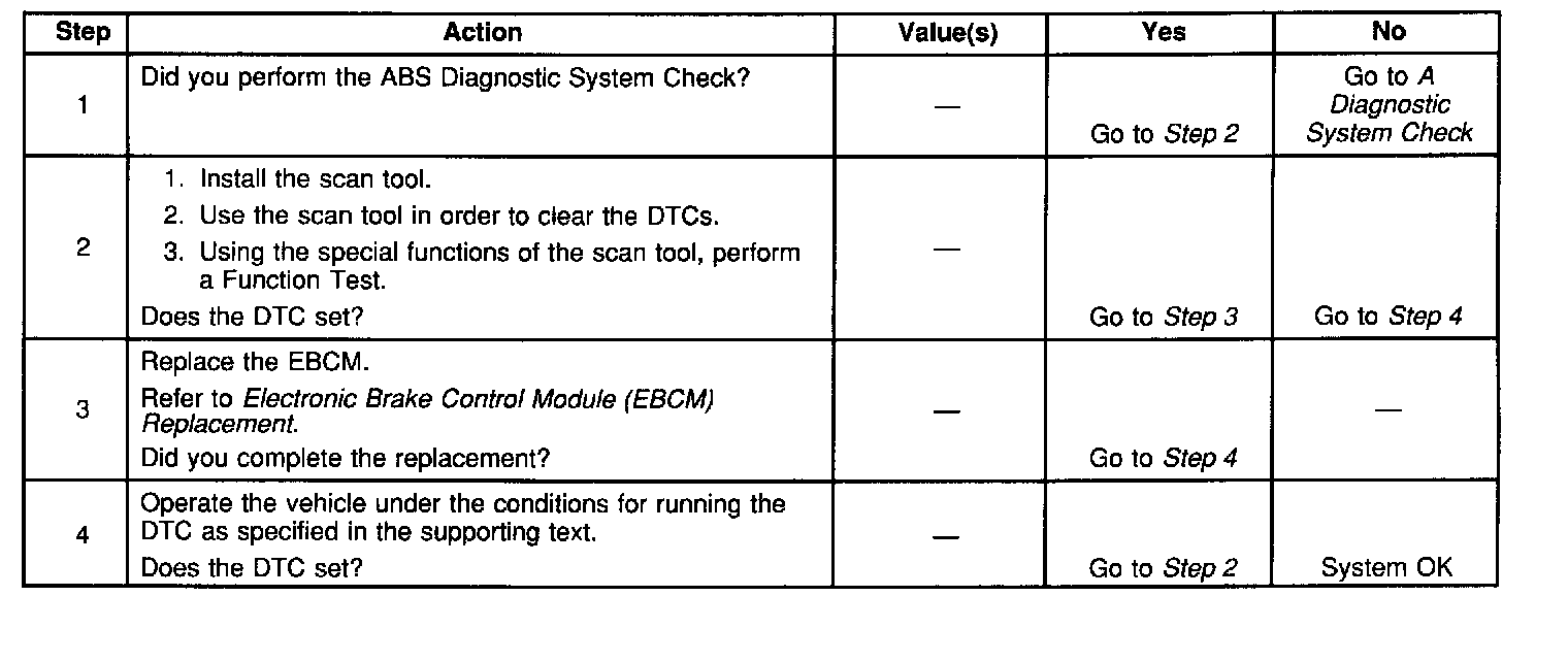 This DTC usually sets because of an open/shorted solenoid coil within the EHCU. The solenoid coil is located within the EBCM and is not serviceable. If the test does not repair the DTC, then replace the EBCM.