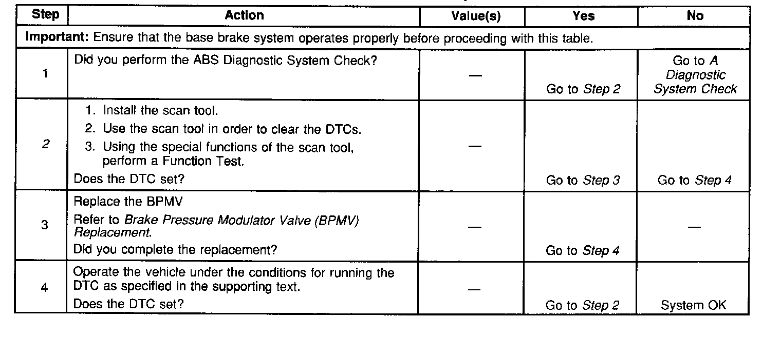 Repair any other DTCs first. Then perform the Function Test of the scan tool in order to ensure proper operation of the ABS.