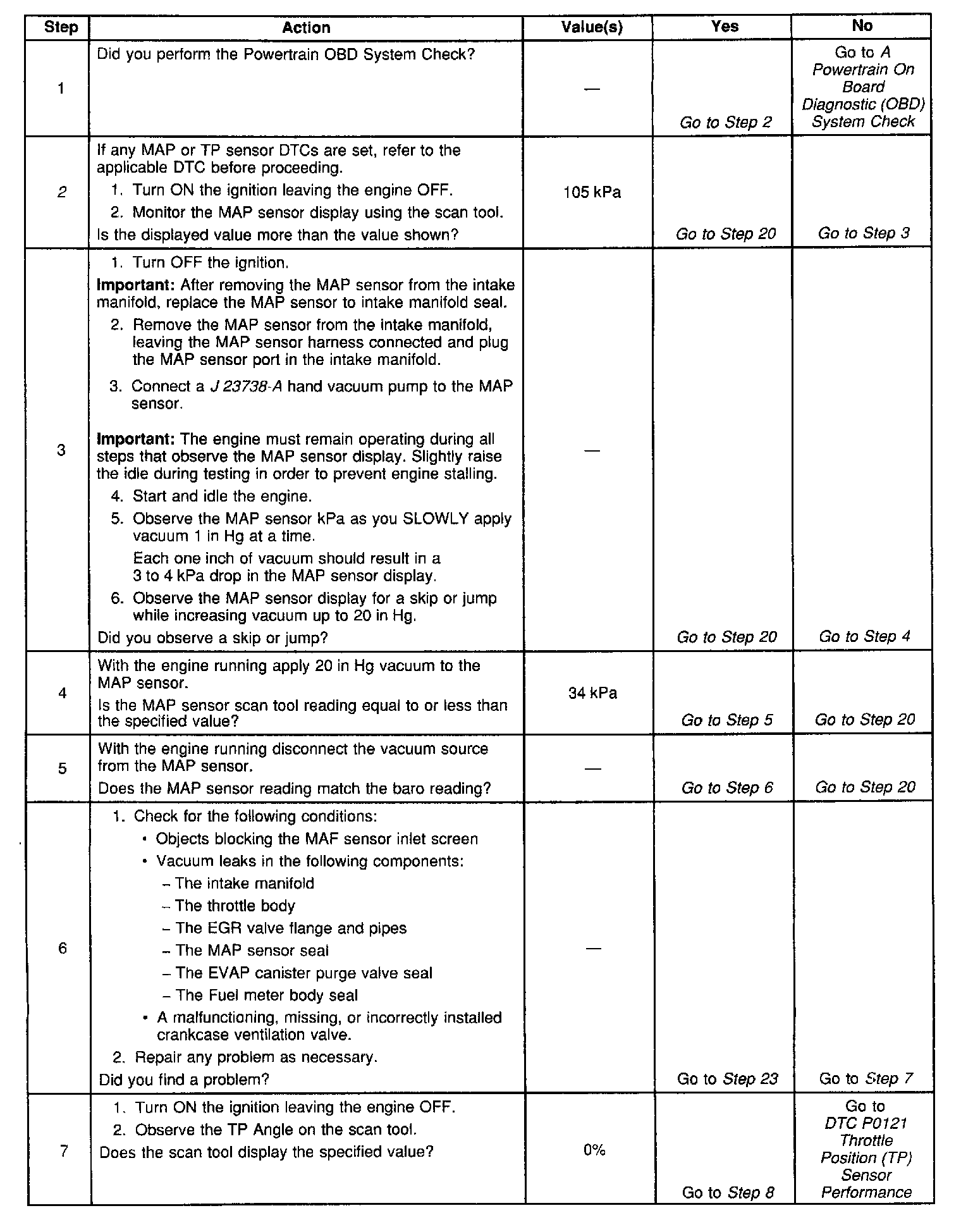 2. Correct any MAP sensor DTCs first. The value shown for the MAP sensor varies with altitude. The value decreases by approximately 3.0 kPa for every 1000 feet of altitude. 1O5 kPa is the approximate value displayed at or near sea level.