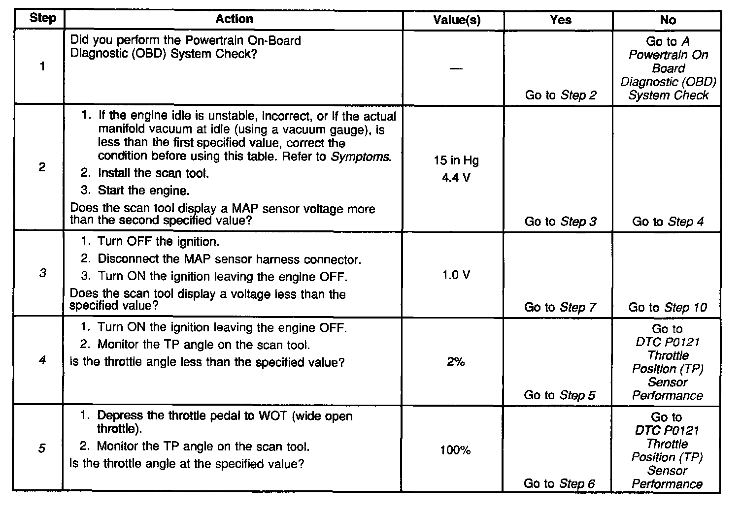 4. This step checks for a stuck TP sensor which could set a MAP sensor code. Even though DTC P0121 did not set, this DTC is more comprehensive and may aid in diagnosis.