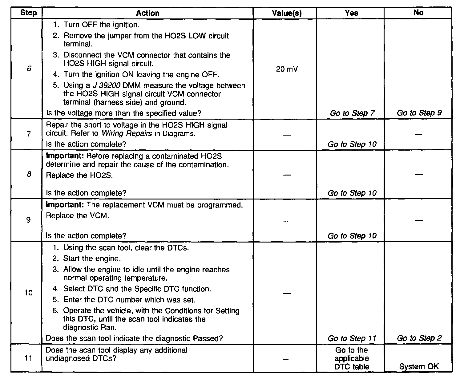 6. This step checks the HO2S HIGH signal circuit for a short to voltage.