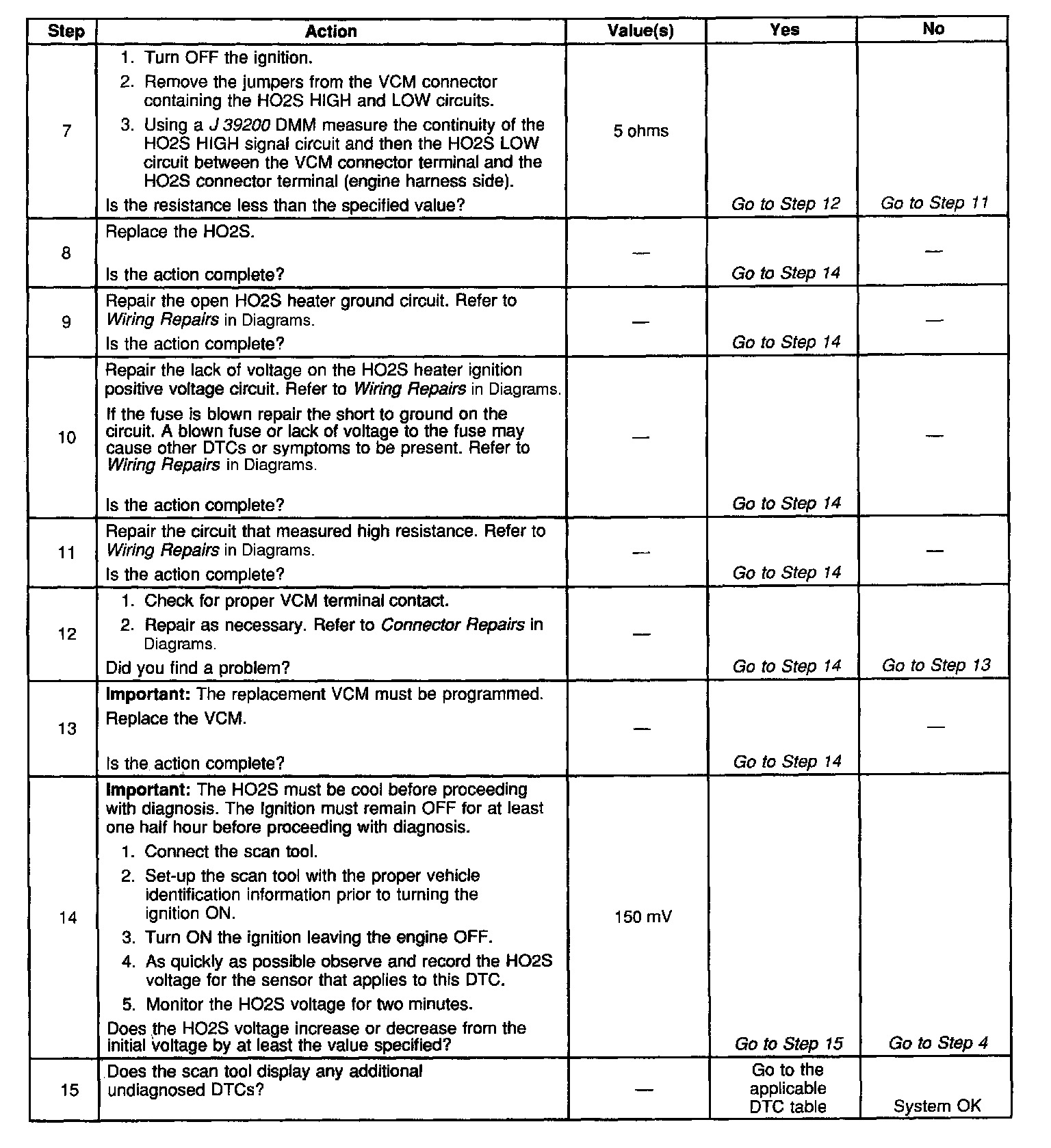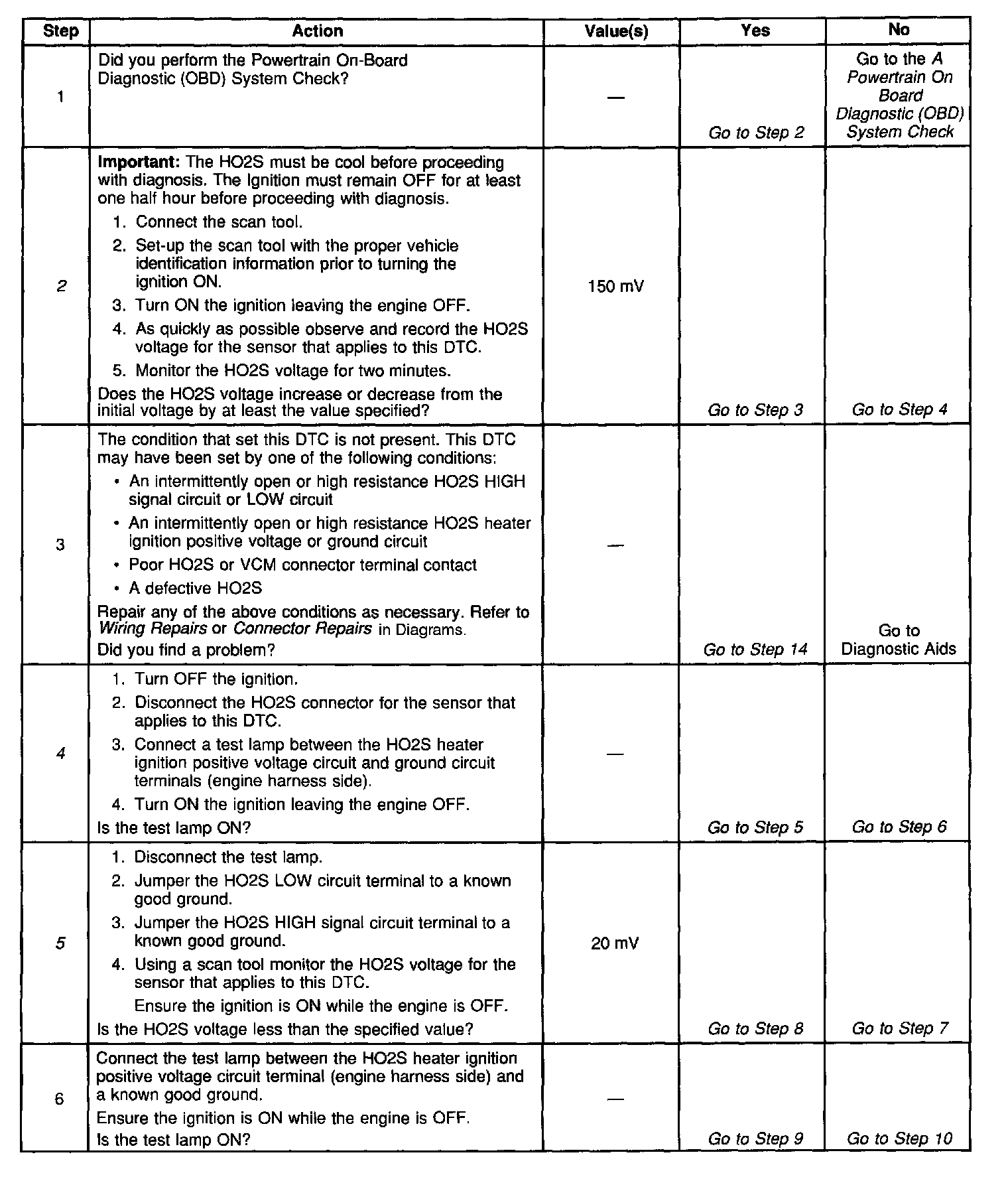 ^ An open or a short to voltage on either the HO2S signal or HO2S low circuits