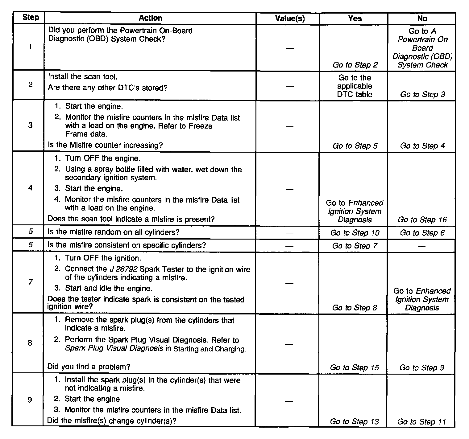 5. The misfire is considered random on all cylinders if, while viewing the misfire fire counters in the misfire data list, the misfire seems to move to different cylinders.