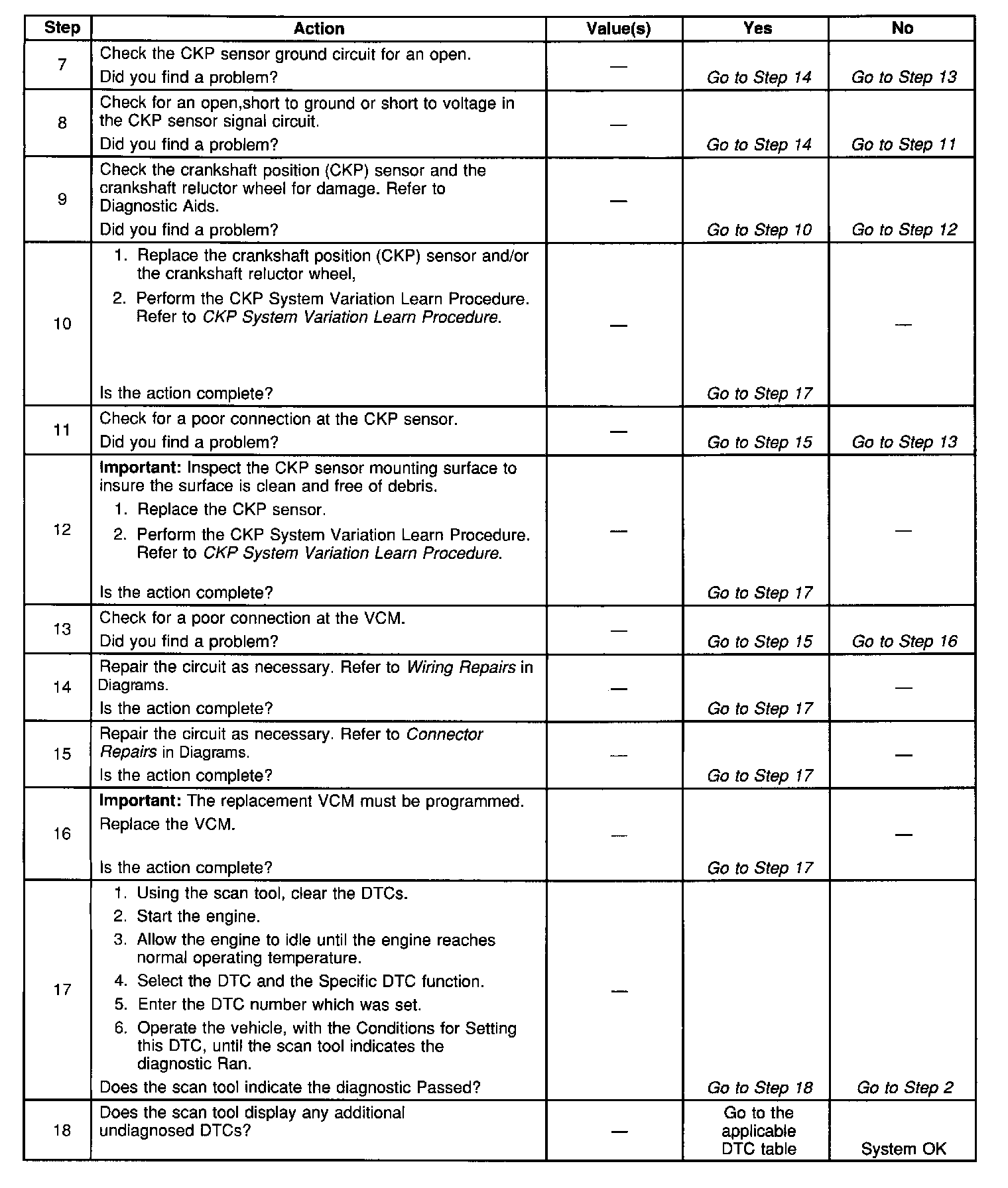 5. This step checks the crankshaft position sensor.