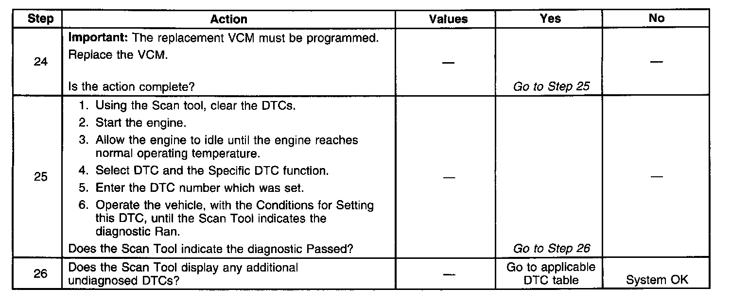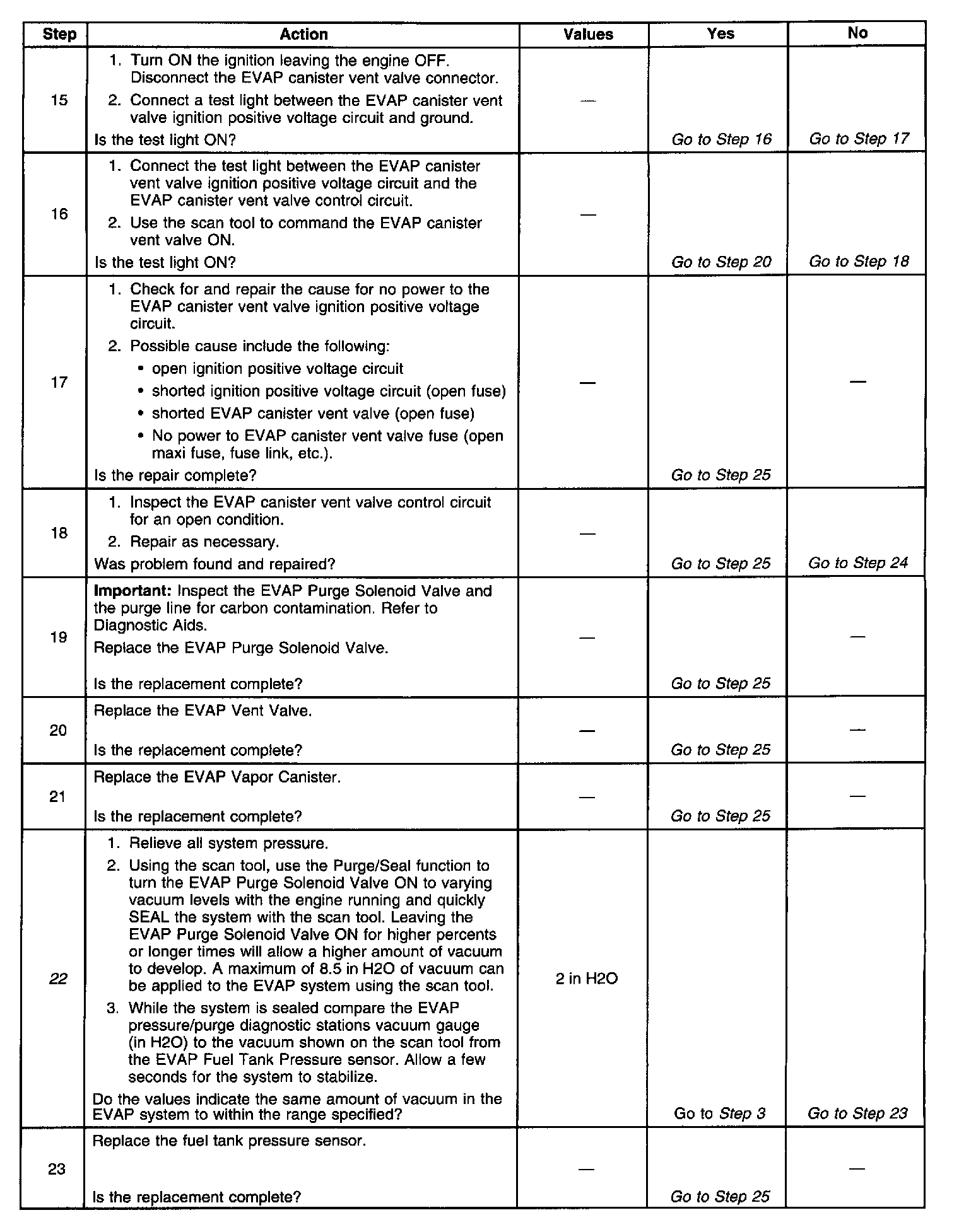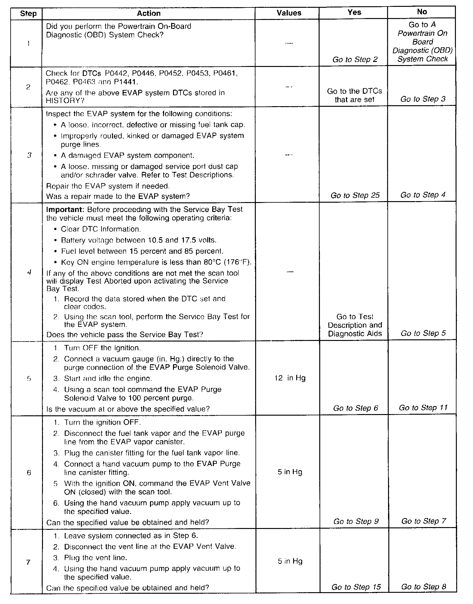 IMPORTANT: An accurate indication of fuel level is required for the VCM to properly pass or fail this DTC. Always diagnose fuel level sensor DTCs before performing this DTCs diagnostic table. Always check for fuel level sensor DTCs stored in history.