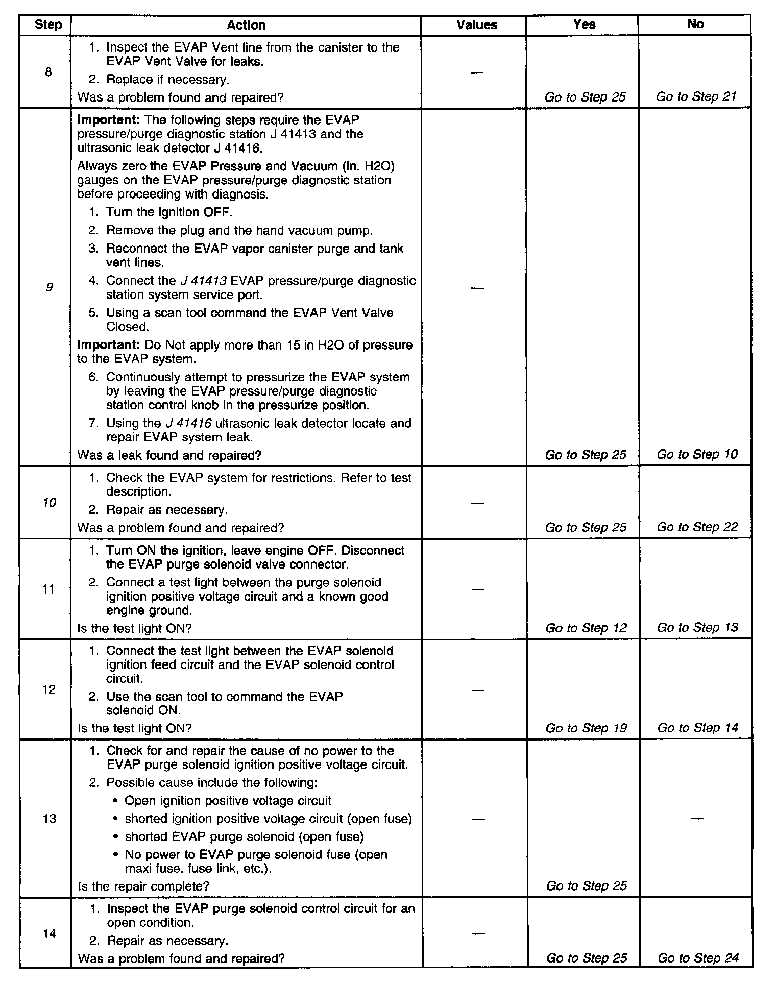 ^ An open ignition positive voltage circuit to the EVAP vent or purge solenoid