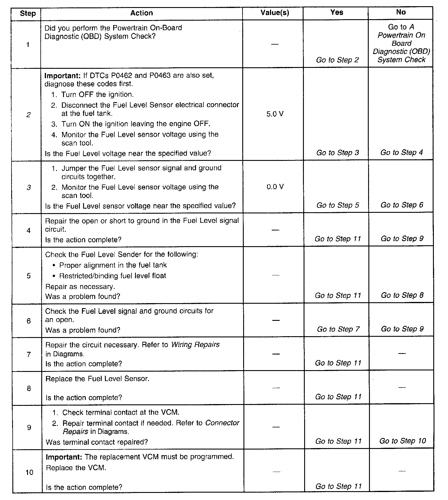 3. This step determines if the Fuel Level sensor signal and ground circuits are OK.