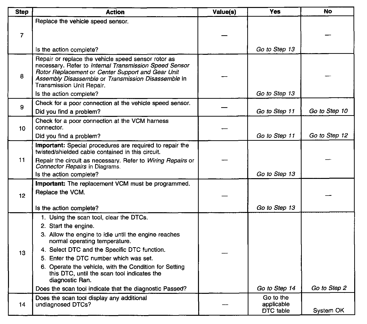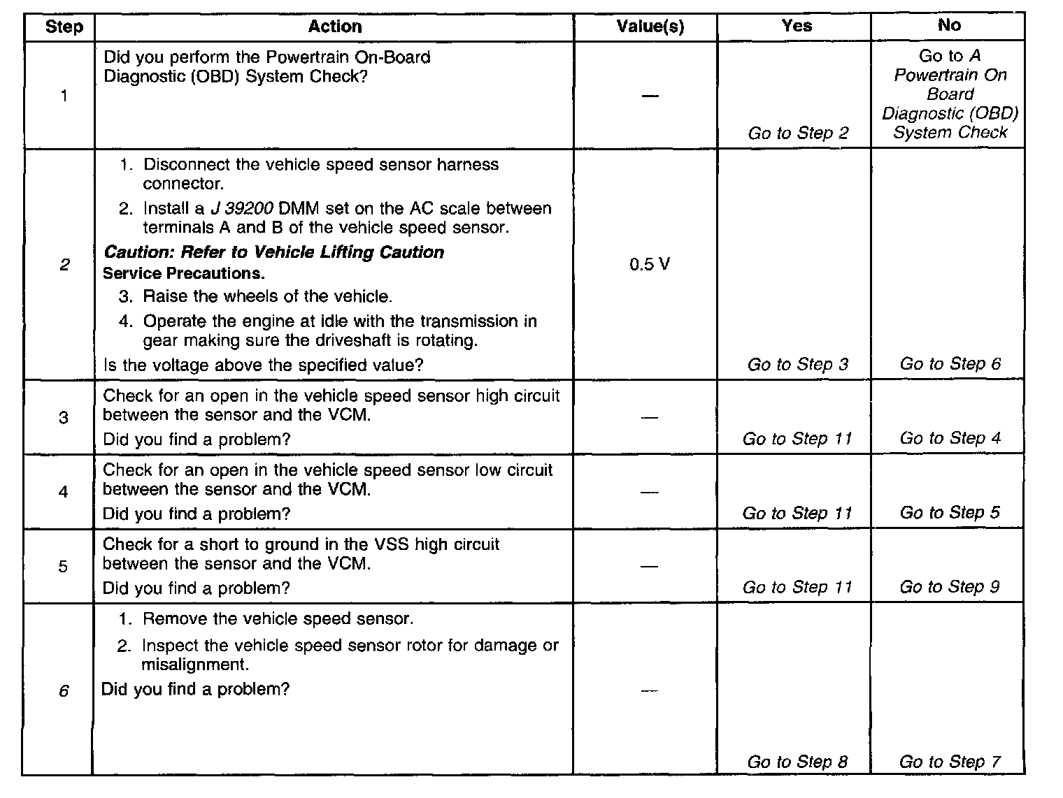 If the VSS signal is not detected at any vehicle speed for 5 seconds, this DTC will set