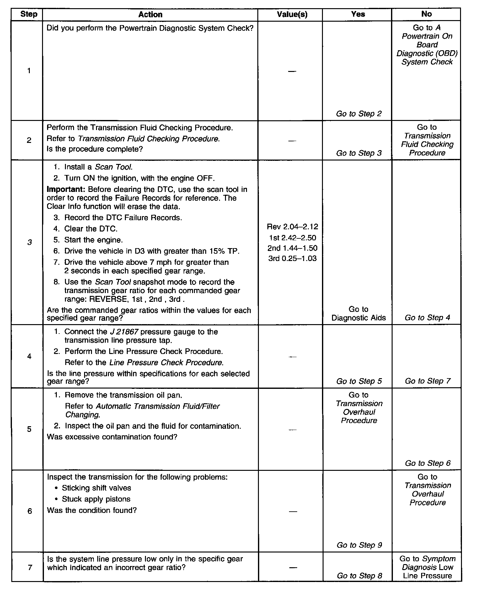 ^ Sticking or contamination of shift valves may cause intermittent incorrect gear ratios.