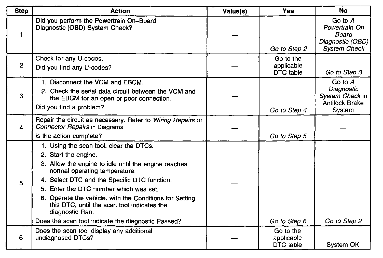 This diagnostic will detect a loss of serial communication from the Electronic Brake Control Module (EBCM) to the control module. This serial communication is essential in order to distinguish misfire from a rough road condition.