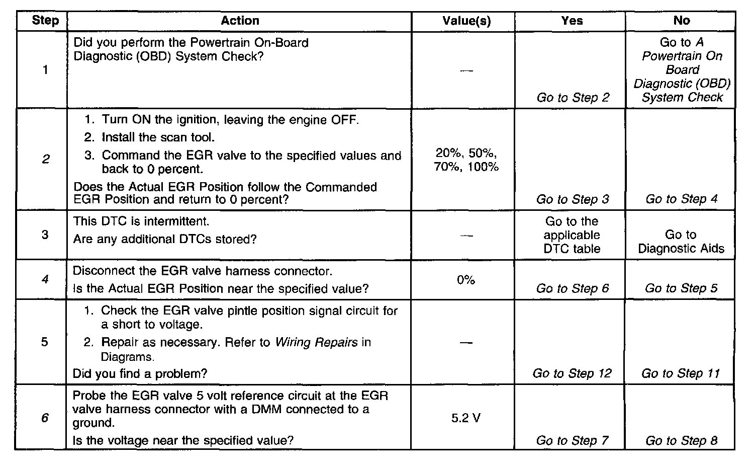 6. If the EGR valve 5.0 volt reference is shorted to voltage, the DMM will read battery voltage and additional DTCs may be set.