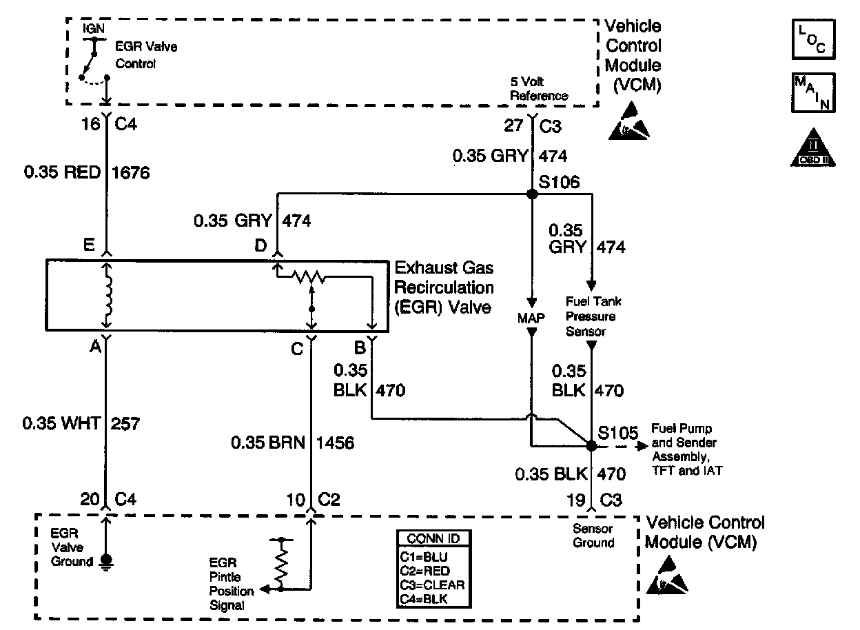 4. When the EGR valve harness connector is disconnected, the scan tool should display the Actual EGR Position as 0 percent. If it does not, the malfunction lies either in the EGR signal circuit or the VCM.