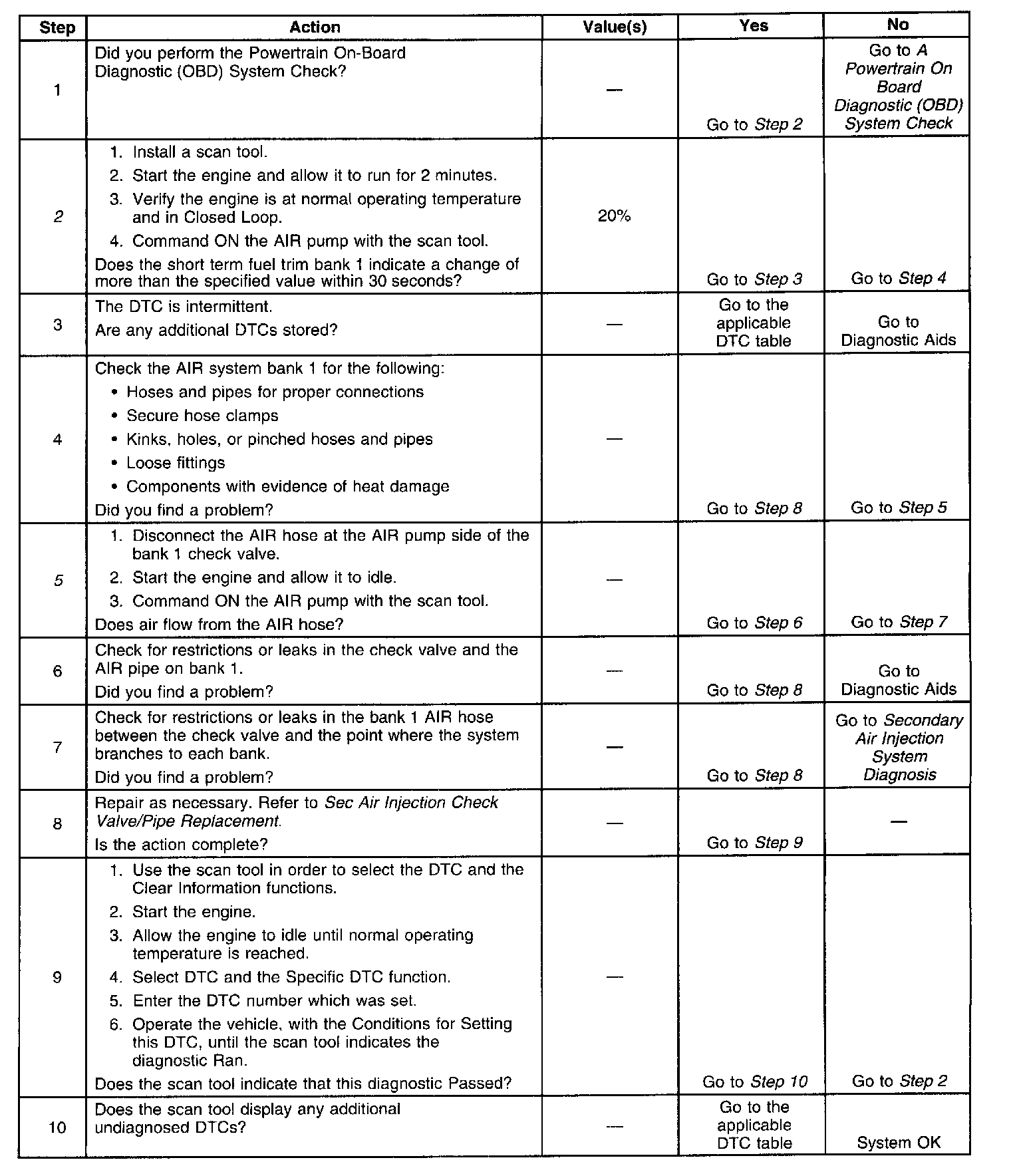 If the VCM determines that the HO2S voltages for BOTH banks did not respond as expected during the tests, DTC P0410 will set. If only one sensor responded, the VCM will set either a DTC P1415 or P1416 to indicate on which bank the AIR system is inoperative.