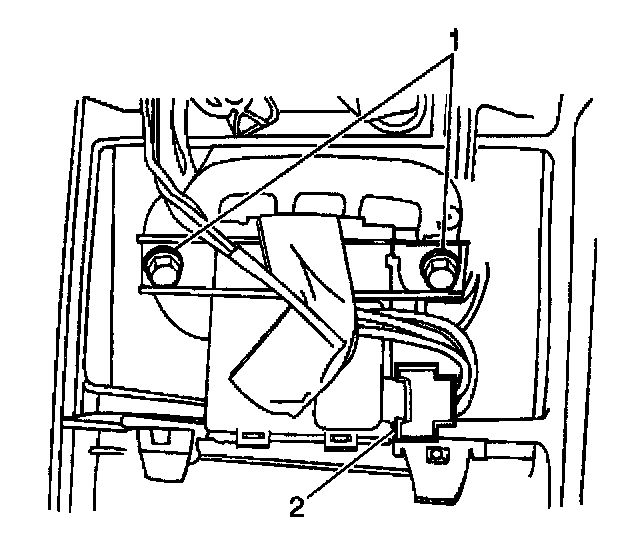 5. Remove the screws (1) holding the universal garage door opener from the overhead console.