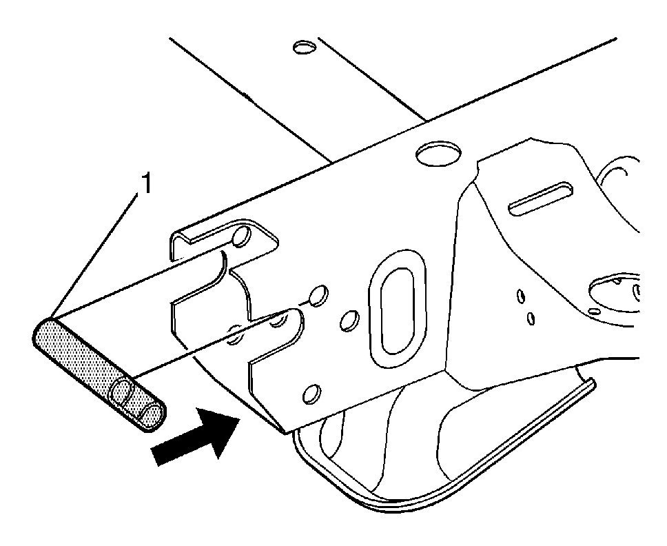 3. Insert the sleeve (1) into the rail end as shown. Align the sleeve with the holes drilled in the previous step.