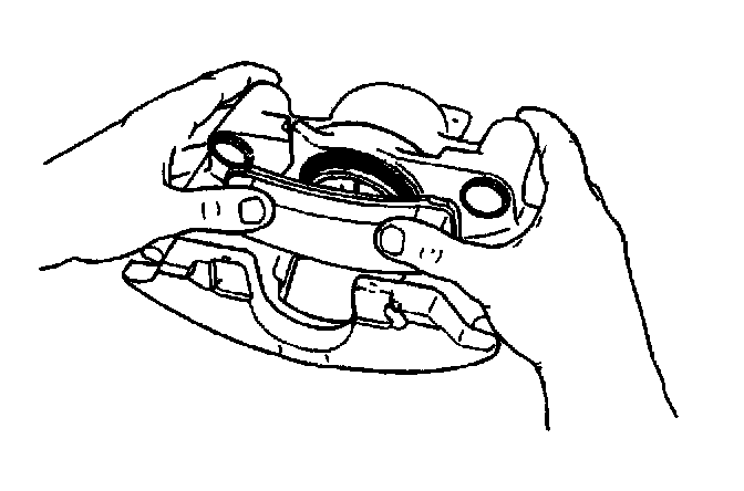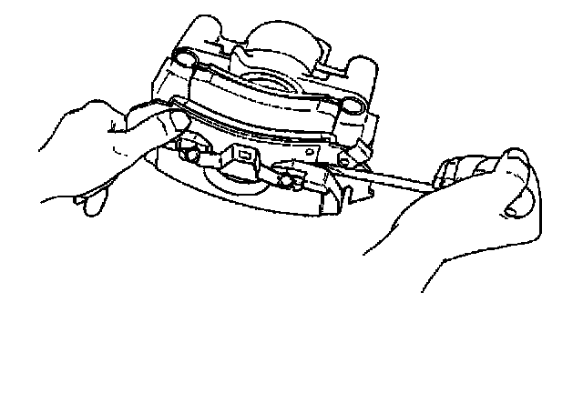 1. Remove the caliper. Refer to Brake Caliper Replacement (Front Delco). Do not disconnect the brake hose as in Caliper.