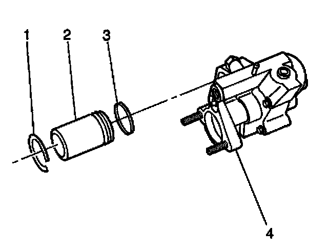 Removal ProcedureCaution: The accumulator contains compressed gas. Always use the proper tools and follow the recommended procedures or personal injury may result. Do not apply heat to accumulator. Do not attempt to repair an inoperative accumulator. Always replace an inoperative accumulator with a new one. Dispose of an inoperative accumulator by drilling a 1.5 mm (1/16 inch) diameter hole through the end of the accumulator can, opposite the O-ring.
