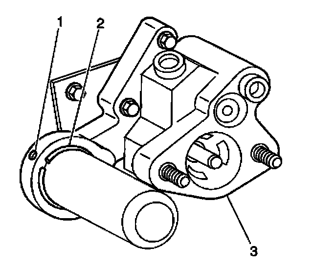 6. Rotate retaining ring (2) until either end of the ring is under the access hole (1).