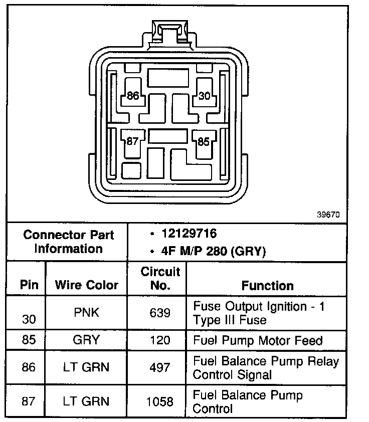 Fuel Balance Pump Relay (Dual Tank):