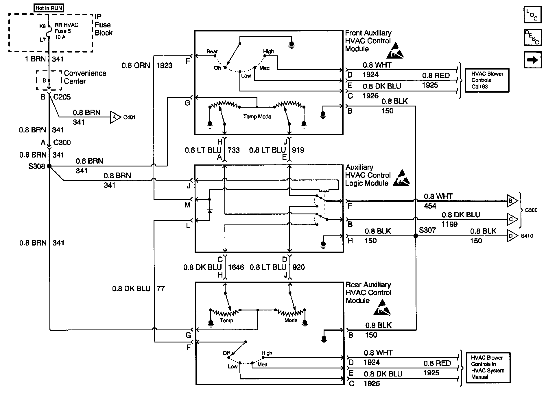 HVAC Air Delivery Temperature Control Schematics: Rear Ventilation Controls (1 Of 2):