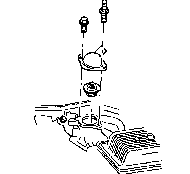 Removal Procedure1. Drain the coolant until the radiator coolant level is below the thermostats. Refer to Draining and Filling Cooling System.