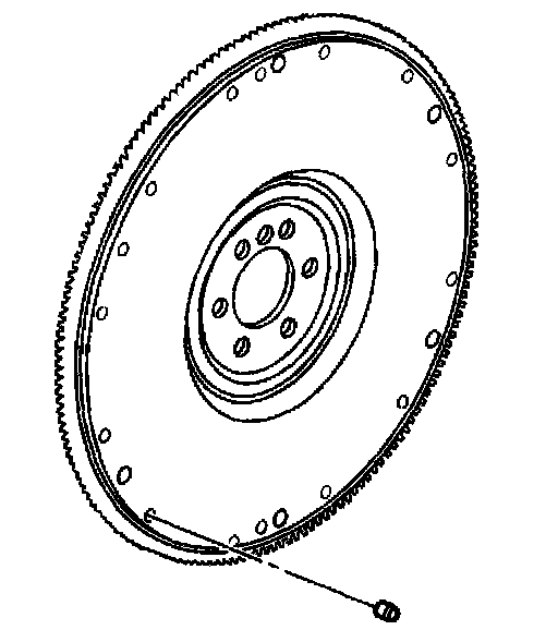 Important: If replacing the manual transmission type engine flywheel, note the location of any existing flywheel weights (if applicable). Install new flywheel weights into the new engine flywheel (if applicable). Flywheel weights must be installed into the new engine flywheel in the same location as the old flywheel weights in the old engine flywheel. A properly installed flywheel weight will be either flush or below flush with the face of the engine flywheel.