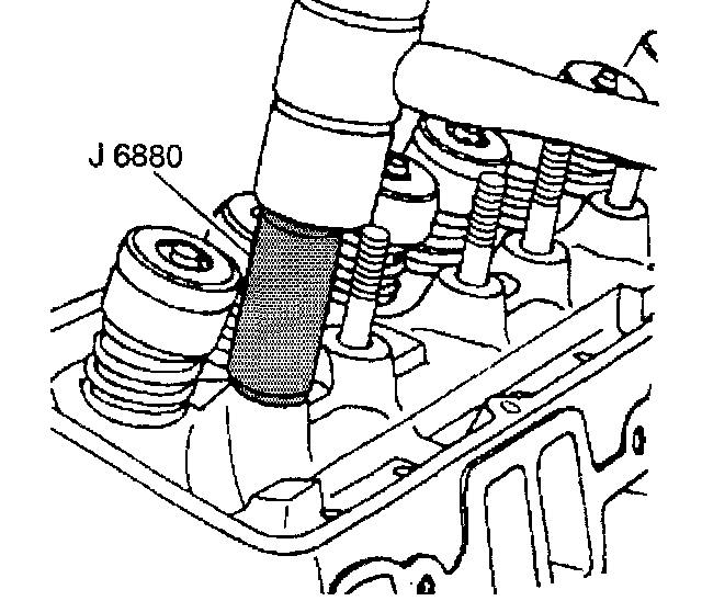The valve rocker arm ball stud is installed to proper depth when the J 6880 bottoms onto the cylinder head.