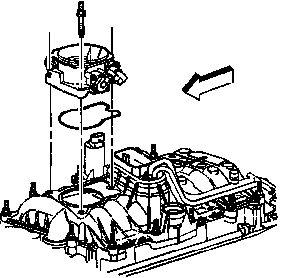 5. Discard the throttle body to upper intake manifold gasket.
