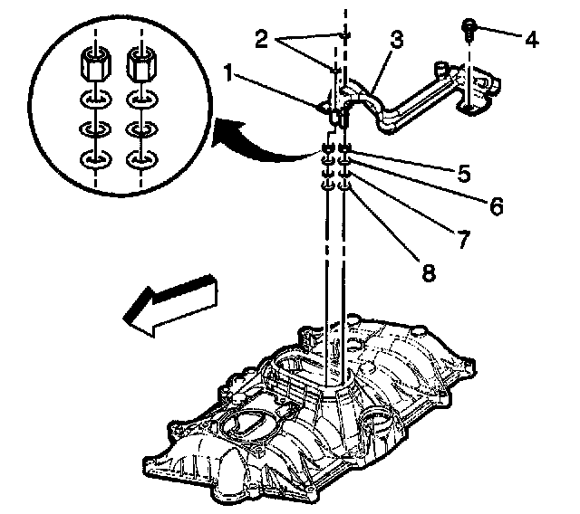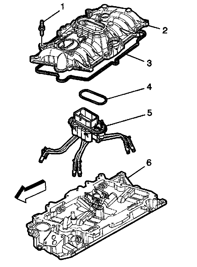 29. Discard the upper intake manifold to lower intake manifold gasket (3).