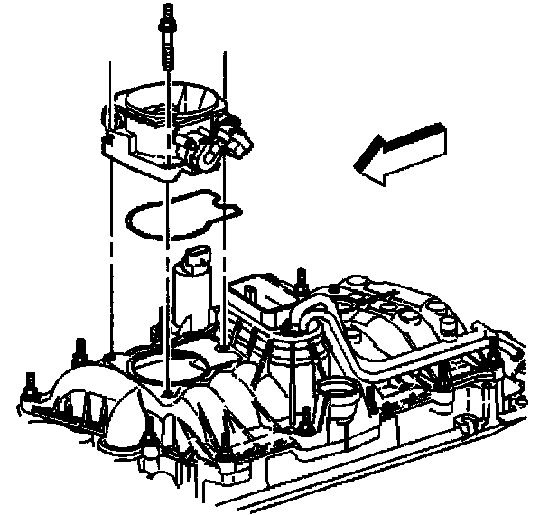 - Tighten the throttle body attaching studs to 9 Nm (80 lb in).