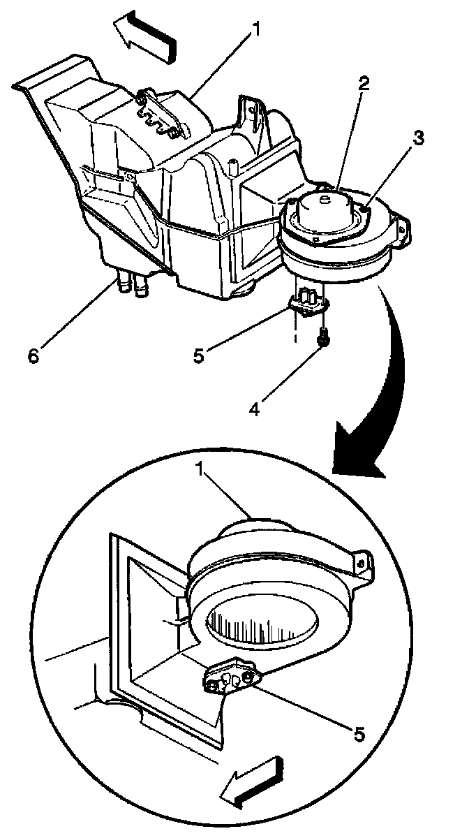 4. Position the blower motor (2) in order to remove the blower motor fan.